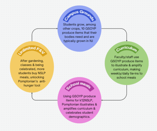 Food Systems Literacy draws upon the goal to build inclusivity and equity as directed by the district’s strategic plan, along with the innovative New Jersey Climate Change Education mandate, the growing body of research that links connection to the natural world with resilience and wellbeing, and, the understanding of food choices and their effects on the lifelong health of people and planet.